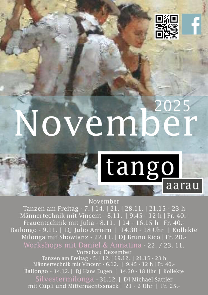 Allgemein NOVEMBER UND DEZEMBER BEI TANGOAARAU ! 2. November 2025 Bruno Schneider Das Jahr klingt langsam aus, bei uns ist einiges los :Technikkurse. Workshops, Milonga mit Showtanz, Bailongo und die Silvestermilonga !